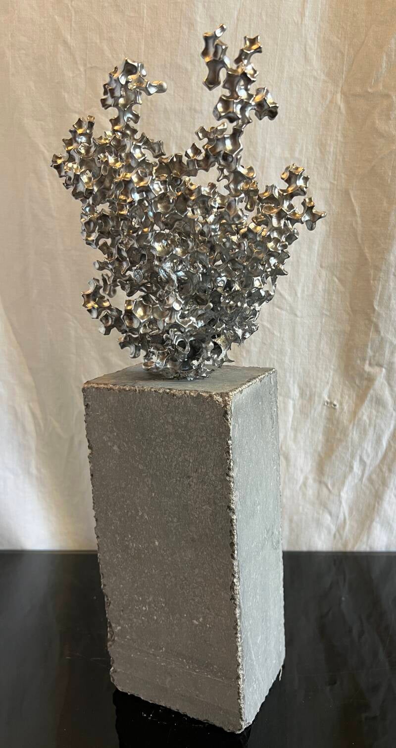 Aluminium radicaal gegoten op Arduinen sokkel.