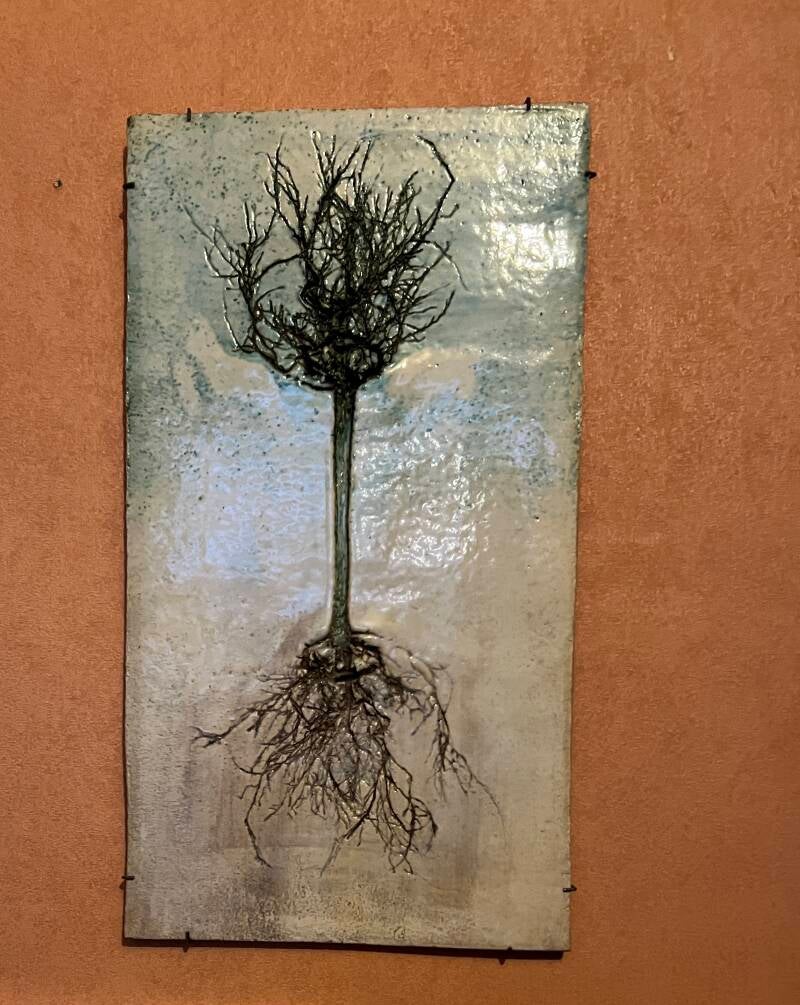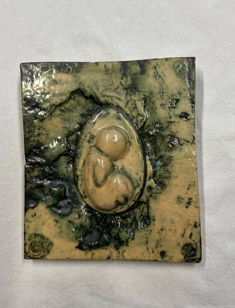 Tableau van fijne chamotte met impressie van korenaren.